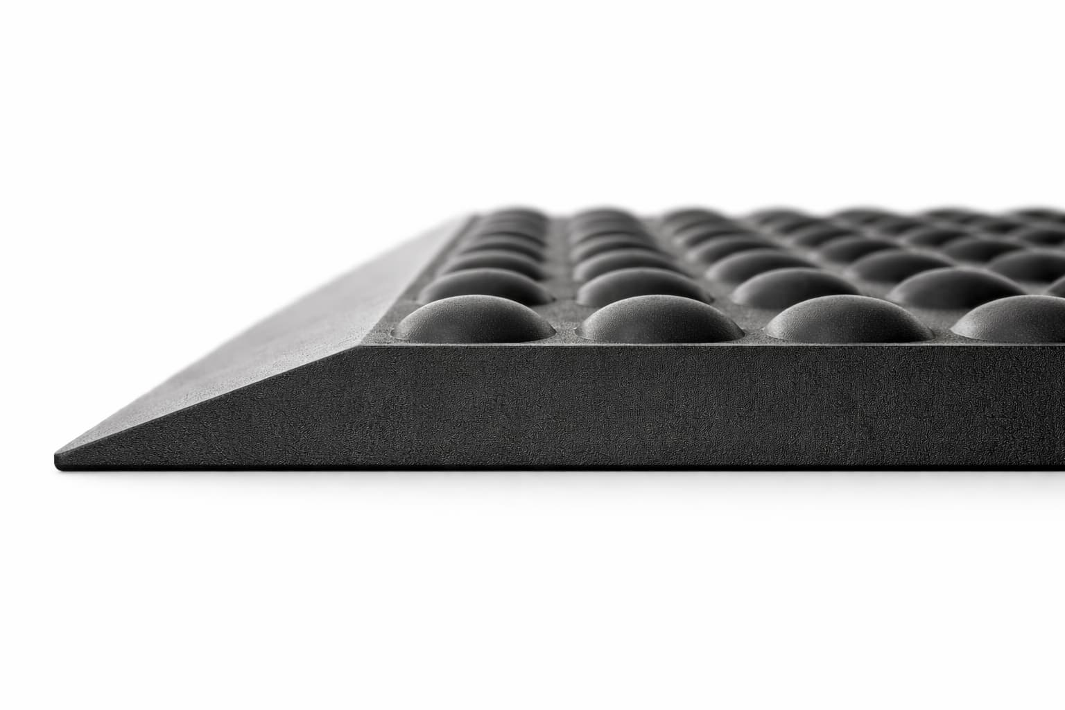 A félgömbös mintázat dinamikus állást biztosít a lábnak. A kis domborulatok folyamatos mikromozgásra ösztönzik a talpat, ami javítja a komfortérzetet és csökkenti az izmok terhelését. Ennek köszönhetően hosszabb ideig lehet kényelmesen állva dolgozni. Kiváló megoldás minden olyan munkahelyen, ahol hosszabb ideig kell állni.